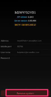 If you already have the Axis software on your phone connected to MSW975DVR1, you need to remove it from the application and re-configure the server name. If you do not have the MSW975DVR1 setup in the app or are installing the app for the first time, skip to the Configure System section.