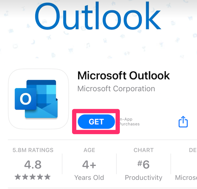 If you do not already have the Microsoft Outlook application on your iPhone/iPad, go to the app store and download Microsoft Outlook.