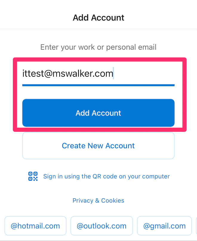 Enter your M.S. Walker email address and click Add Account.