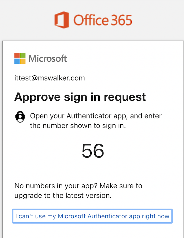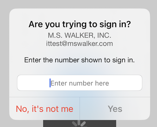 Enter your M.S. Walker password and click continue. You will be prompted to do two-factor; it will prompt you with a 2 digit code to enter into the Microsoft Authenticator application.