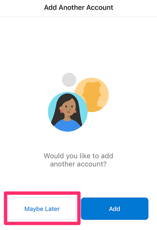 You will be prompted to add another account. Click Maybe Later.