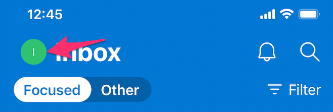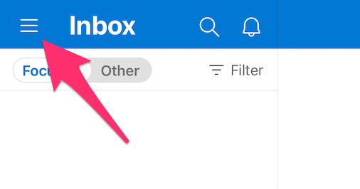 Access the Outlook Menu by clicking on your initial next to the Inbox on iPhone or the three horizontal bars in the top left-hand corner on iPad.