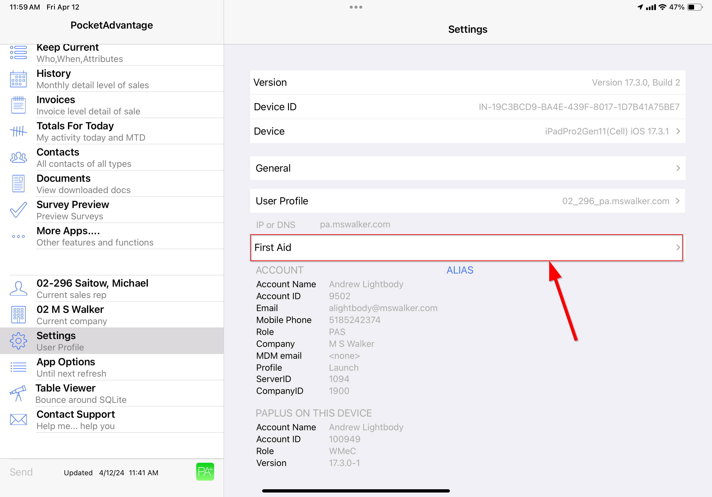 Step 3: In the settings view on the right side click on the First Aid button.