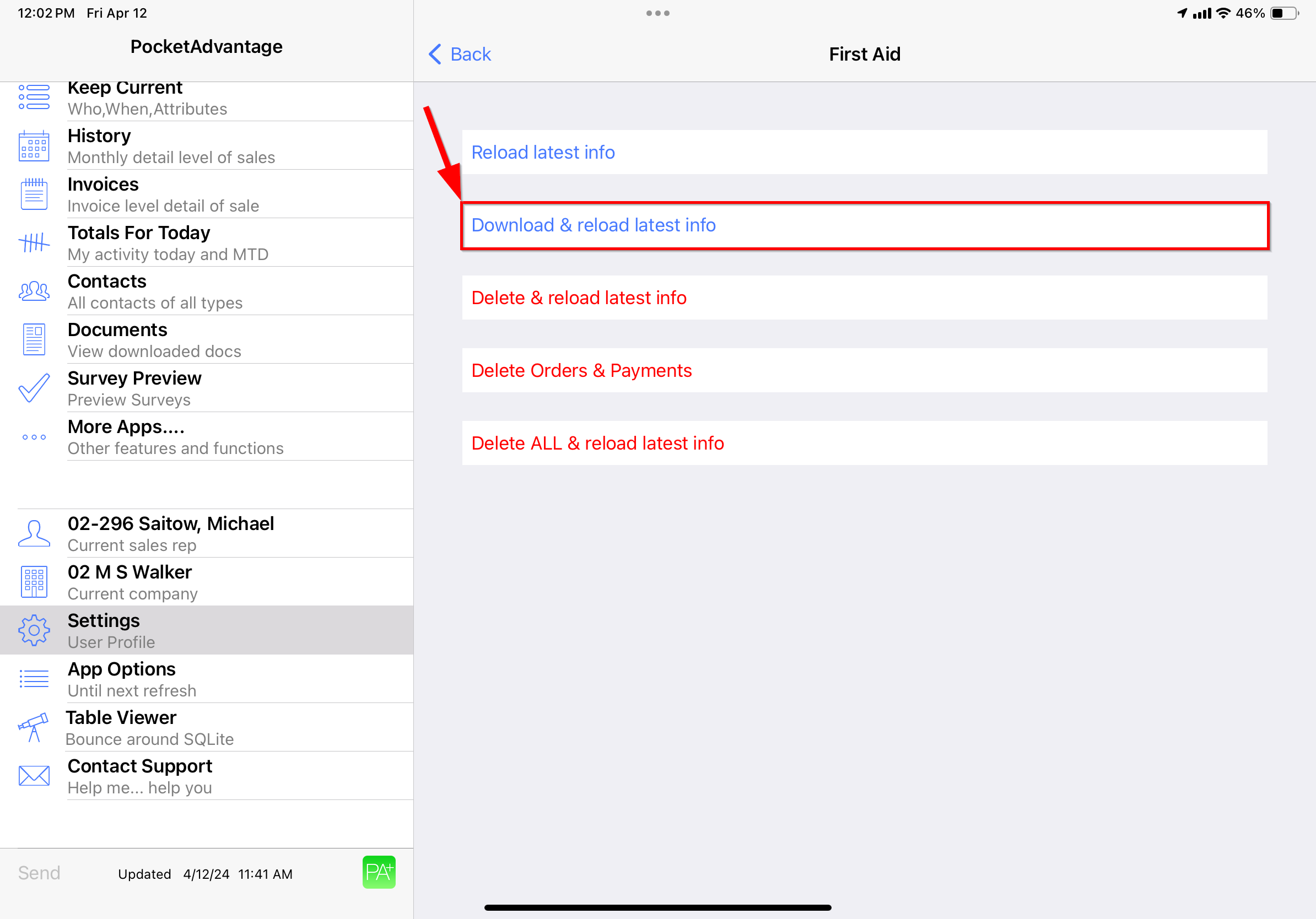 Step 4: Finally in the First Aid view click the second option “Download & Reload Latest Info”