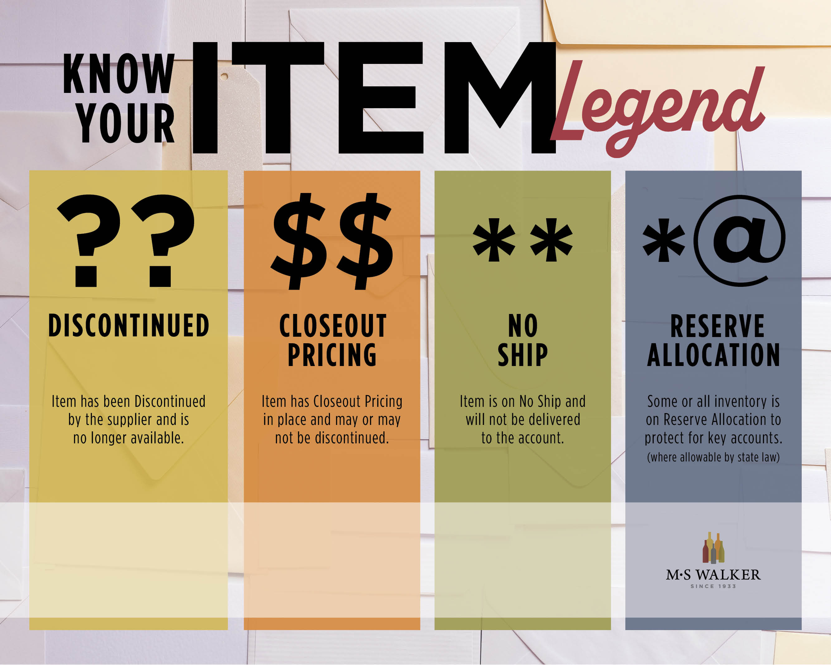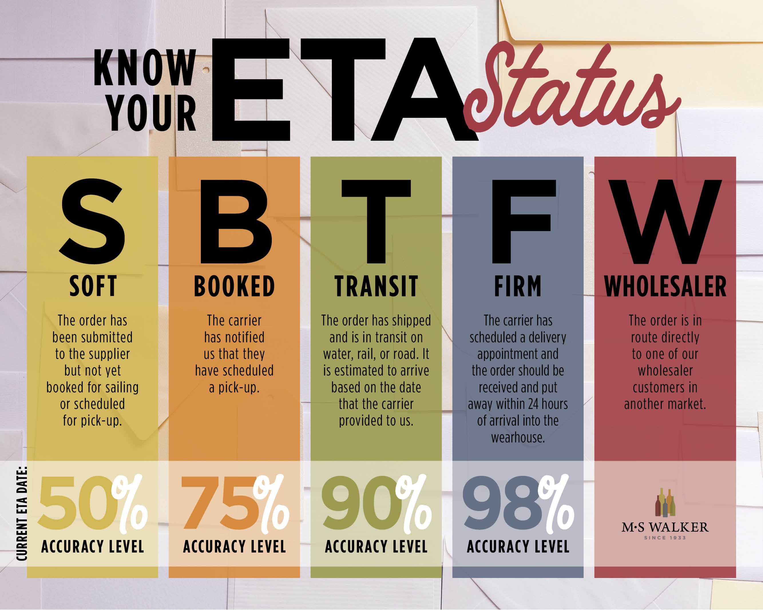 As polished sales professionals, it is important to understand our systems and what certain “codes” mean to us all internally. Our systems help us indicate lots of information with a quick glance, offering superior service to our customers by giving the correct information and expectations during the sales conversation. We have put together the following infographics that help you navigate and understand what you are seeing within PA (Order ETA column) or while reading Item Descriptions in our various programs.
